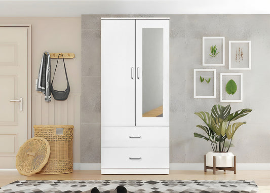 Armario de Dormitorio 2 Puertas 2 Cajones W, con Espejo