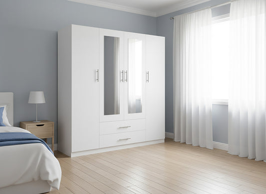Armario de Dormitorio 4 Puertas W, con Espejo