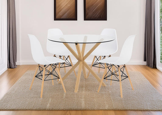 Pack Mesa Redonda de Cristal Templado + 4 Sillas Estilo Nordico