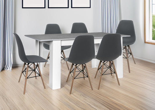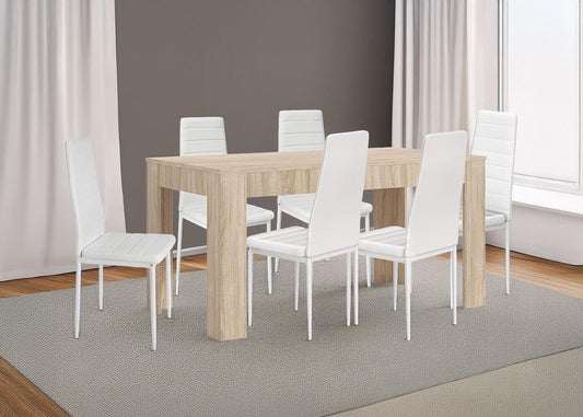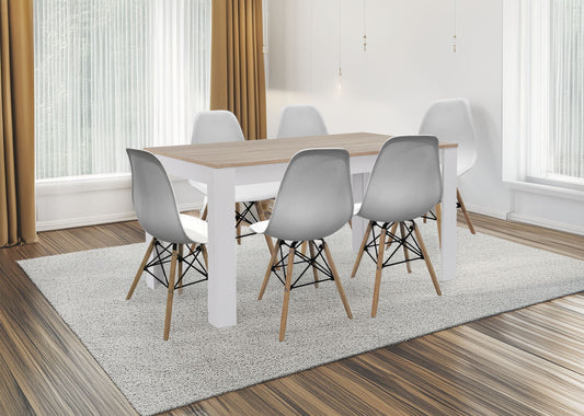 Pack Mesa de Comedor o Cocina Fija + 6 Sillas Estilo Nordico