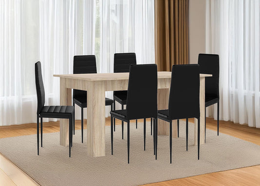 Pack Mesa Fija de Comedor o Cocina + 6 Sillas en Polipiel/metal