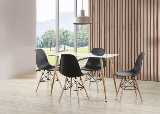 Pack Mesa de Cristal Templado + 4 Sillas Estilo Nordico