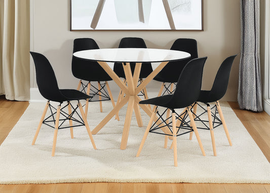 Pack Mesa Redonda de Cristal Templado + 6 Sillas Estilo Nordico