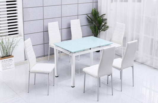 Pack Mesa de Cristal Templado + 6 Sillas Estilo Nordico
