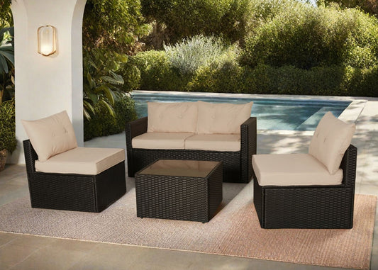 Conjunto de Exterior Sofa + Puff + Mesa y Sillon. Muebles de Jardin y Terraza