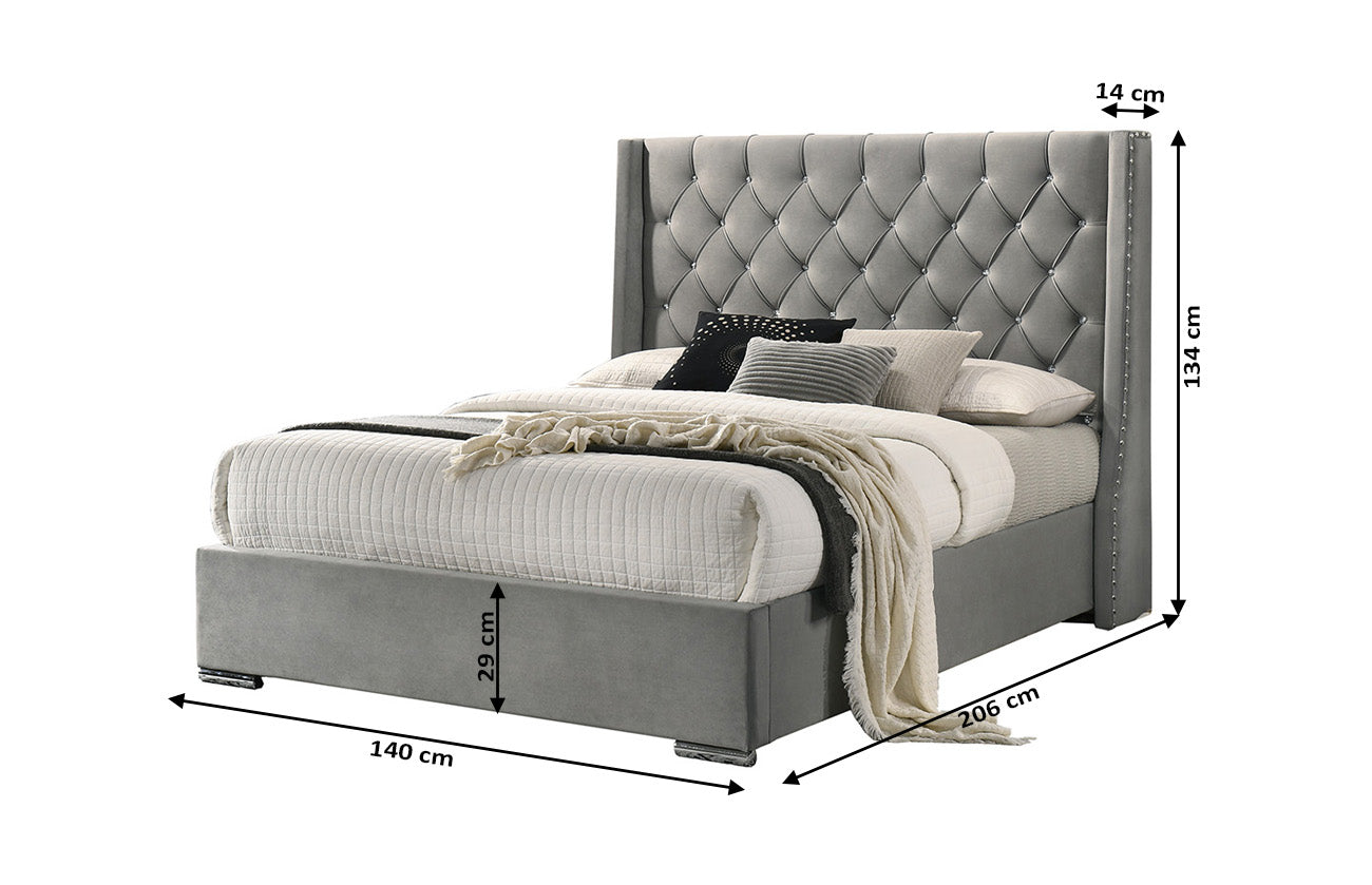 Transforma tu dormitorio en un santuario de descanso y glamour con nuestra exquisita cama de matrimonio Meldives 135cm. El cabecero en capitoné y las tachas en el borde agregan un toque de elegancia y sofisticación a tu espacio, mientras que su estructura sólida brinda un soporte estable y confiable para un sueño reparador y cómodo. Hecha con materiales de alta calidad, esta cama es el epítome del estilo clásico y durabilidad. ¡Sumérgete en el lujo y la elegancia con nuestra cama de matrimonio Meldives!
