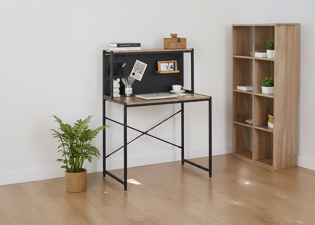 Escritorio Industrial Nancy. Estanteria y Panel Organizador