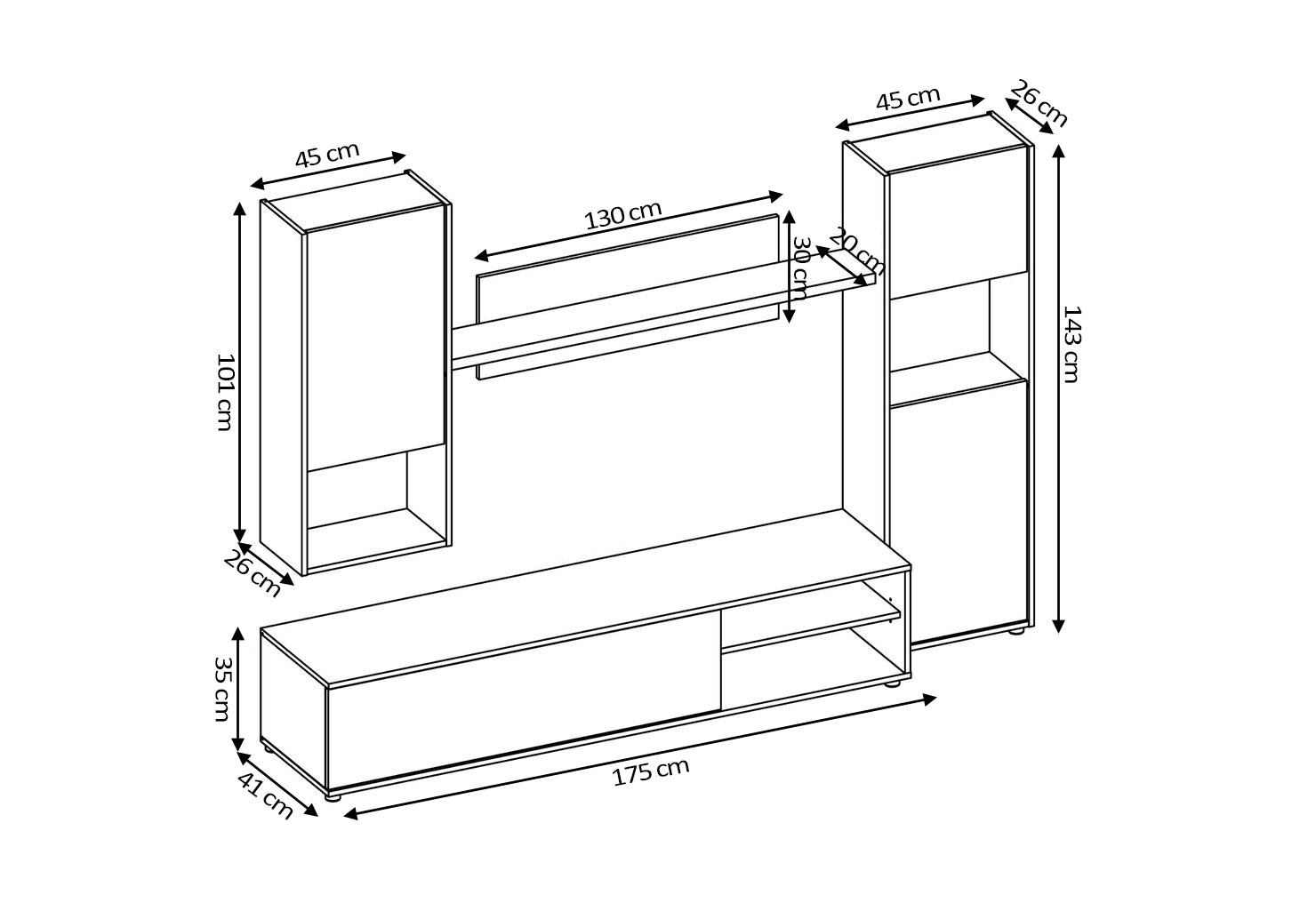 Dale un toque de sofisticación y practicidad a tu sala con este conjunto de muebles de salón que incluye cuatro piezas esenciales: mueble para TV, estante, mueble colgante y mueble lateral. Su diseño contemporáneo y alta calidad en acabados convierten este set en la solución ideal para revitalizar tu área de entretenimiento. El mueble para TV ofrece amplio espacio para tus dispositivos y accesorios, mientras que el estante es perfecto para mostrar tus objetos decorativos. El mueble colgante maximiza el almacenamiento sin ocupar el suelo, y el mueble lateral añade un equilibrio perfecto entre estilo y funcionalidad. Fabricados con materiales resistentes, garantizan durabilidad y un montaje sencillo.