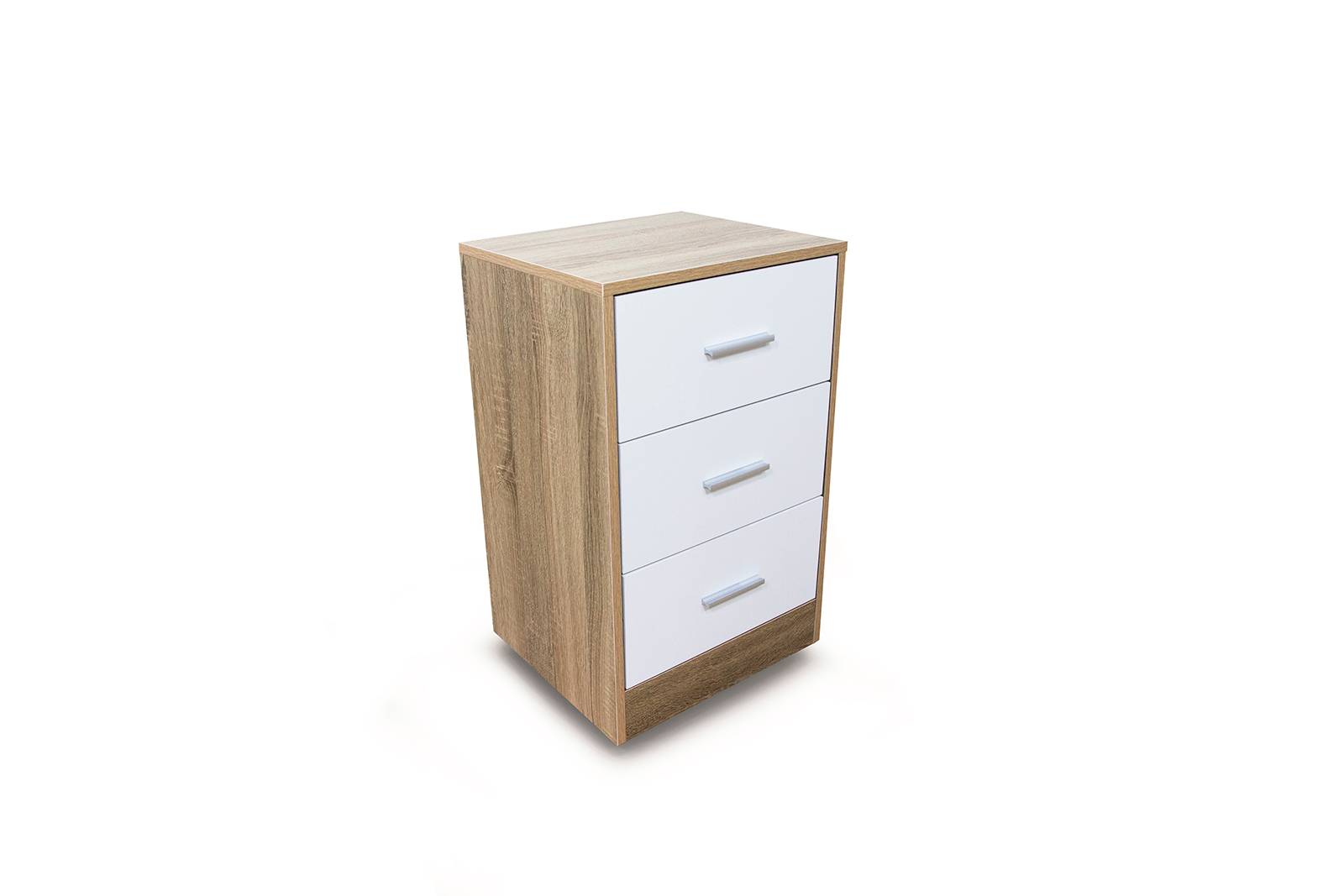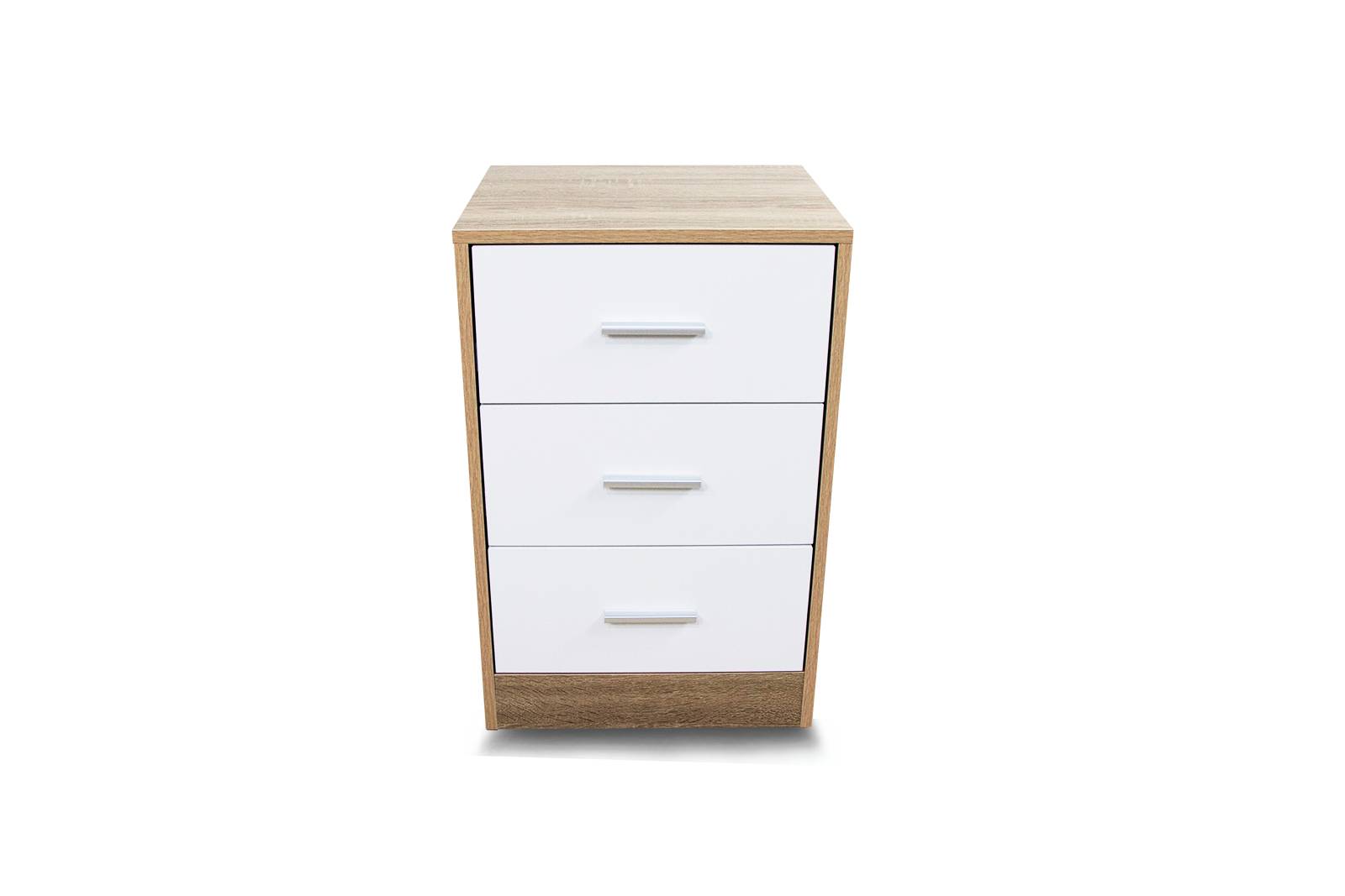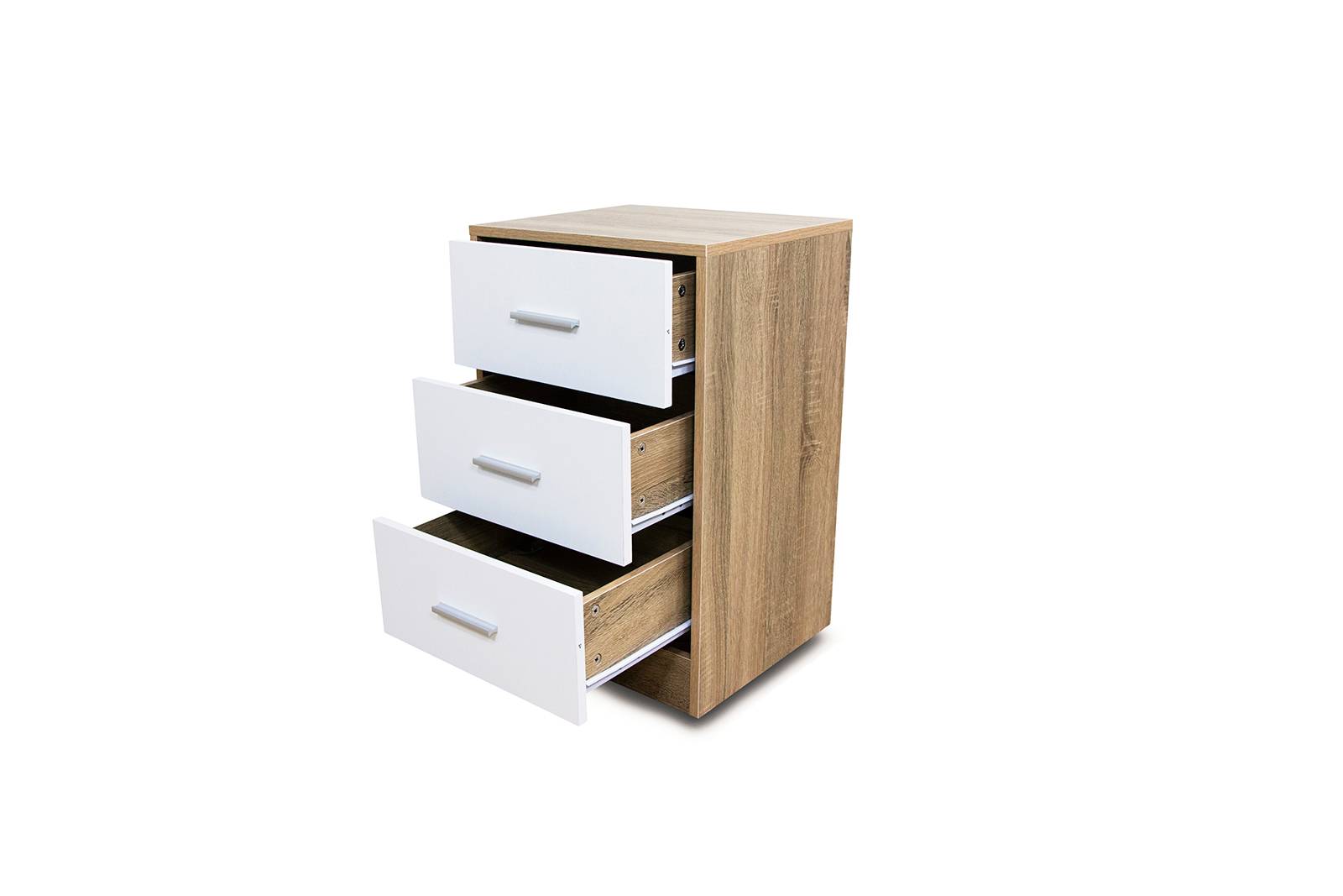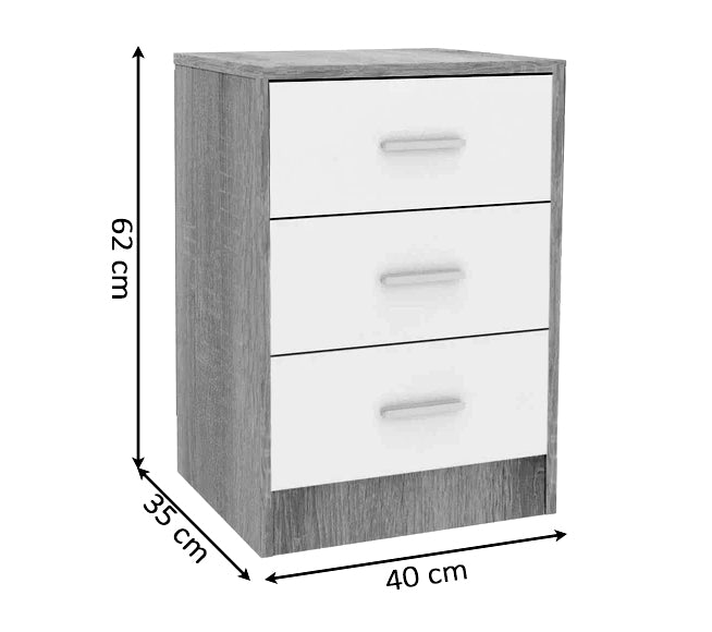 Encuentra la combinacion perfecta de estilo y funcionalidad con nuestra mesita de noche de 3 cajones Silva. Esta pieza versatil y elegante es el complemento ideal para tu dormitorio, brindando espacio de almacenamiento y un toque de encanto contemporaneo. Los 3 cajones de la mesita te ofrecen un amplio espacio para mantener tus pertenencias organizadas y al alcance de la mano. Construida con melamina de alta calidad, nuestra mesita de noche garantiza durabilidad y resistencia en el uso diario. Facil montaje.